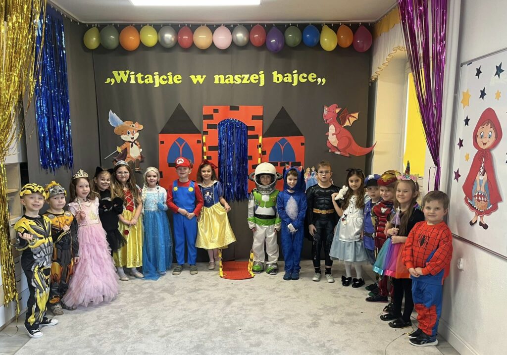 Bal w naszym przedszkolu był pełen radości i dobrej zabawy. Nie zabrakło wyjątkowego gościa – odwiedził nas Kubuś Puchatek, który wywołał ogromne uśmiechy na twarzach dzieci.